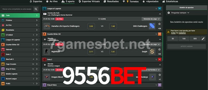 O 9556Bet oferece uma grande seleção de opções de apostas em e-sports com probabilidades competitivas